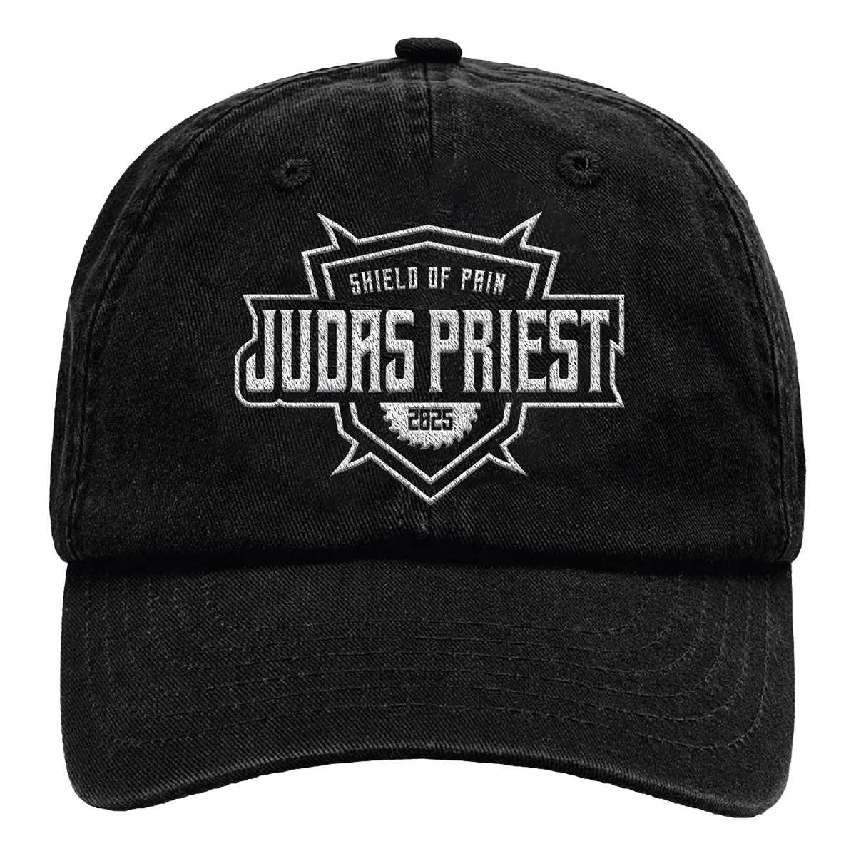 A classic Shield of pain hat with custom Judas Priest artwork across the front.